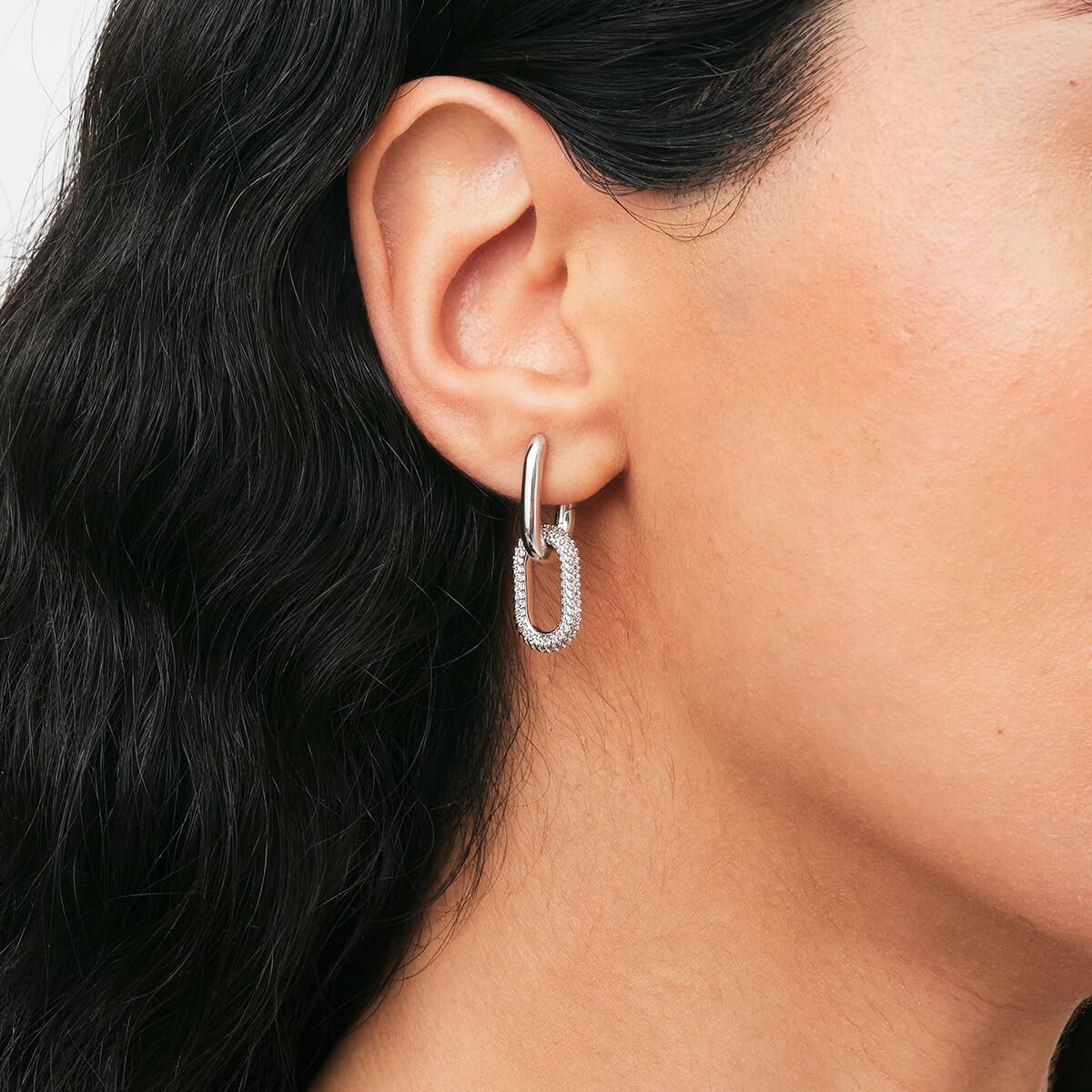 - A mix of industrial elements and refined crystal details take these silver link earrings way beyond your basic chain. Wear them with the rest of the Crystal Link collection or alone as a statement piece—these chunky earrings are a stunner either way.